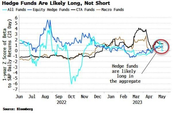 17. Hedge fund positioning. "Hedge funds in the aggregate - as well as macro funds, equity long-short and CTAs - are likely neutral to net long equities, not short."