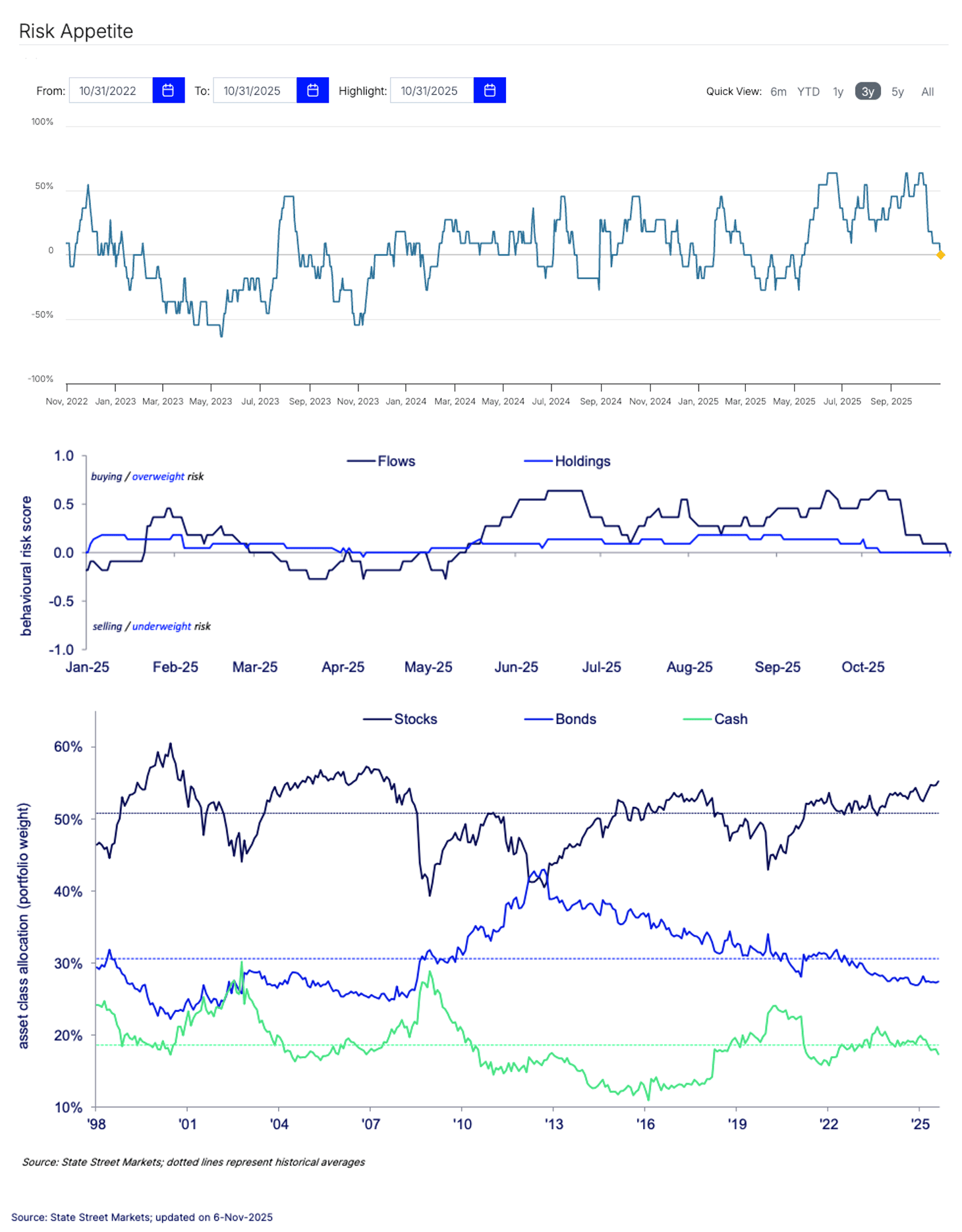 4. Institutional Investor Risk Appetite. "The State Street Risk Appetite Index has taken a step down from the highest level all year to a neutral reading. Institutional investors are not turning risk-averse, instead they have increased their allocation to stocks to 18 years high."