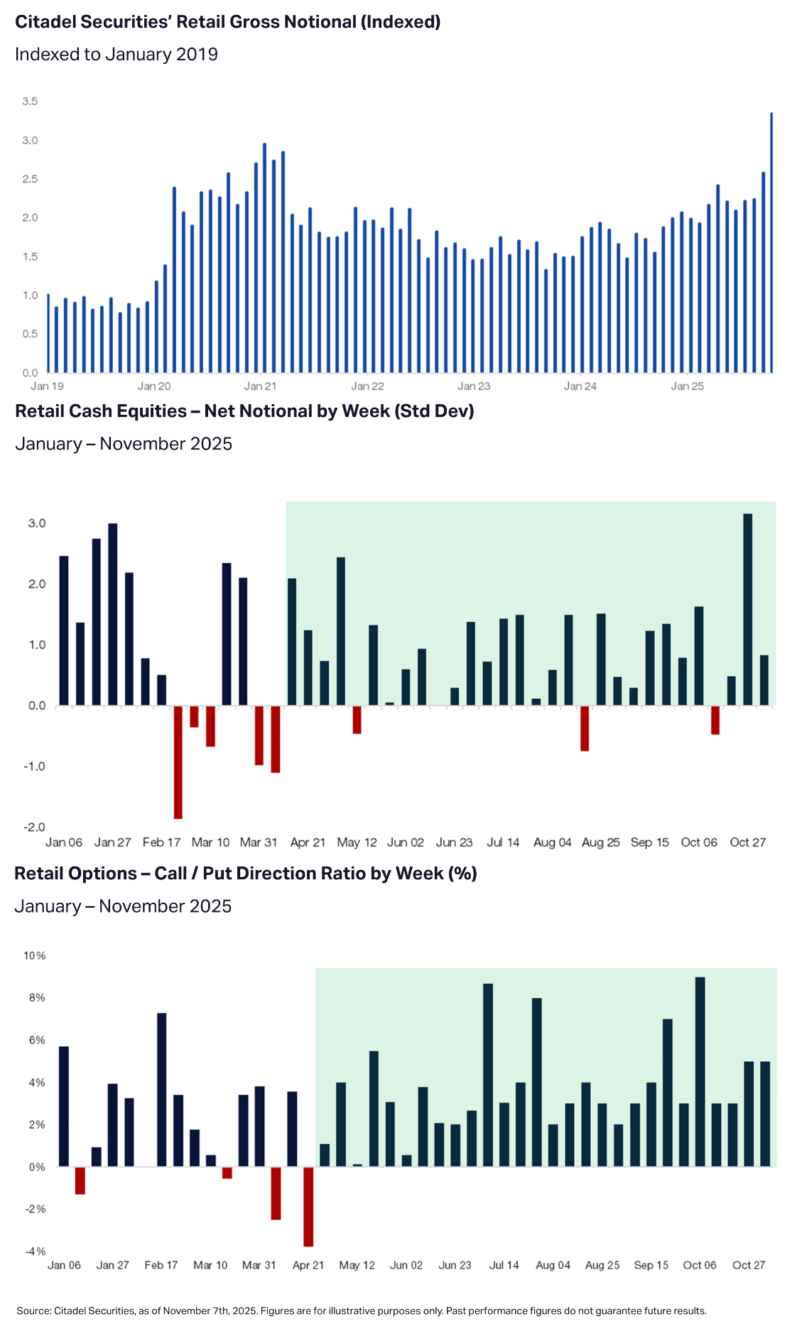 3. Retail BTFD. "Retail investors continue to add into weakness, becoming the new price setters … During the latest pullback, retail flows showed one of the largest 'buy-the-dip' events on record."
