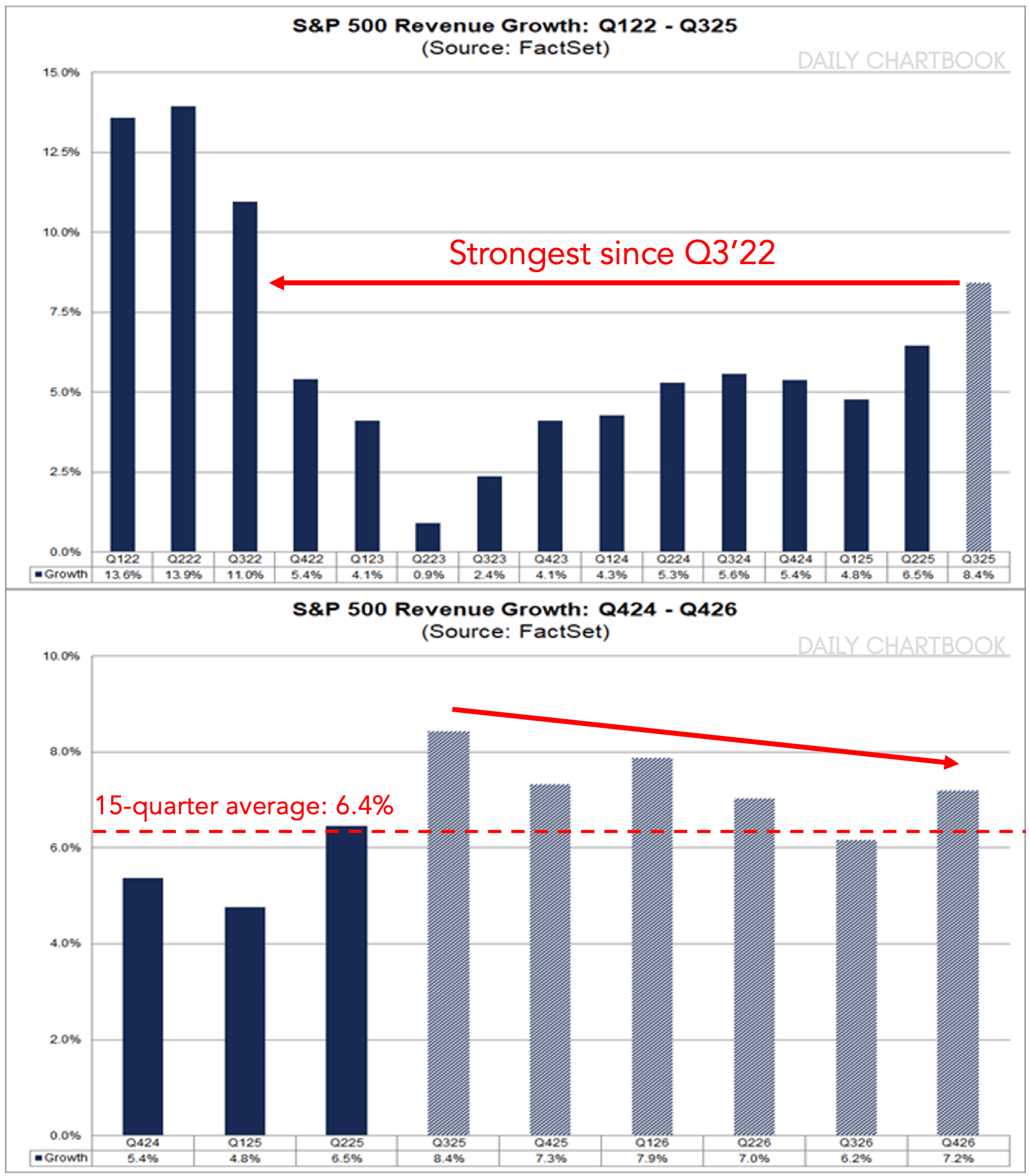 5. Q3 sales growth. The S&P 500 is reporting the strongest revenue growth in 3 years. While this strength is expected to fade over the coming quarters, analysts are still penciling in mostly above-average growth.