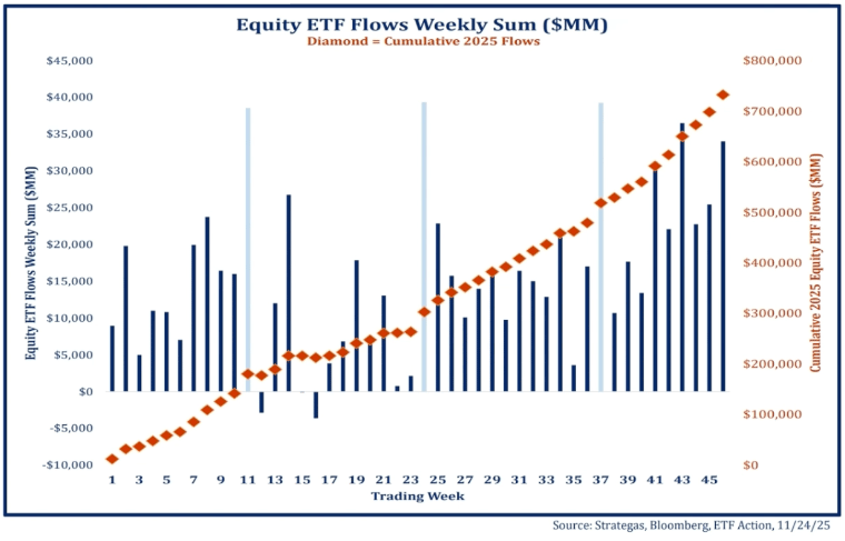 3. Equity ETF flows. Equity ETF flows remain strong to quite strong.