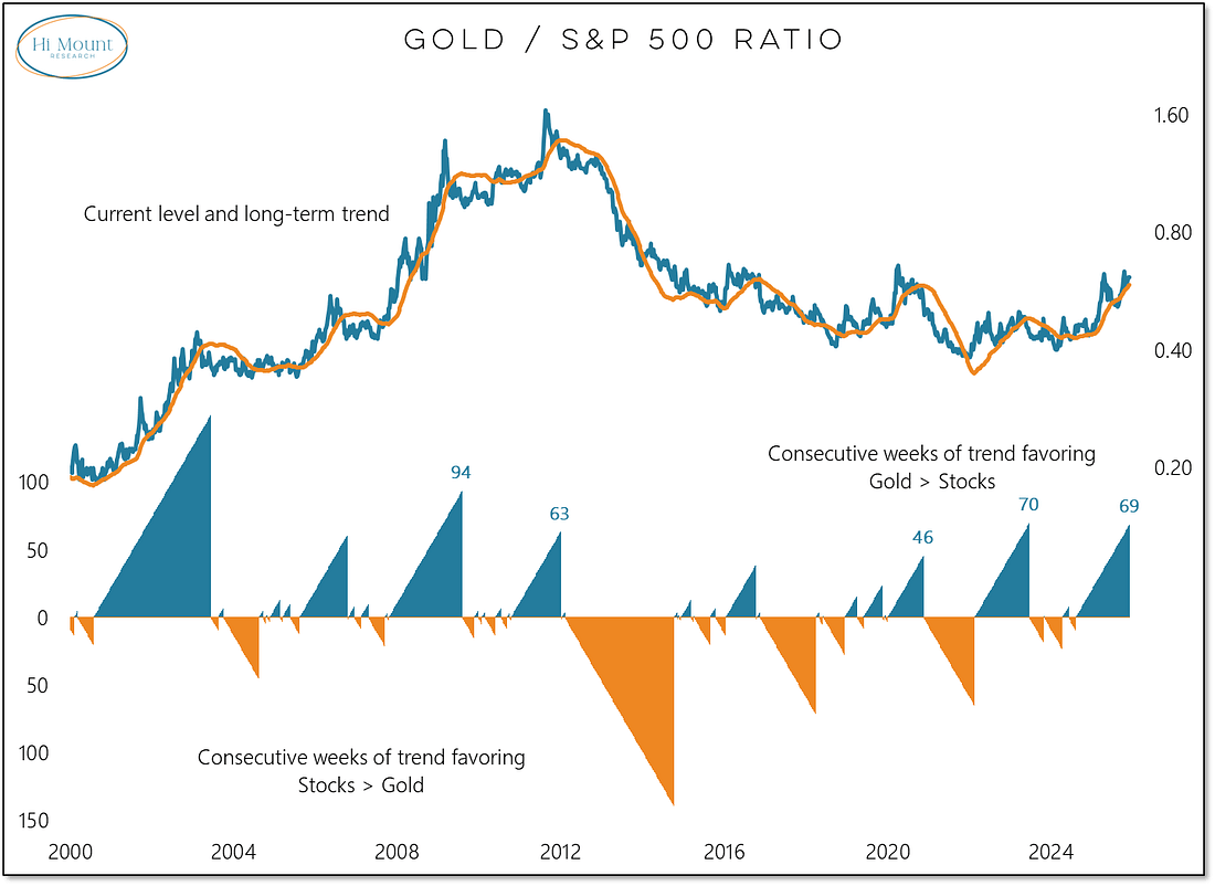 1. Gold vs. SPX. "Gold is approaching its longest period of sustained strength versus stocks in more than a decade."