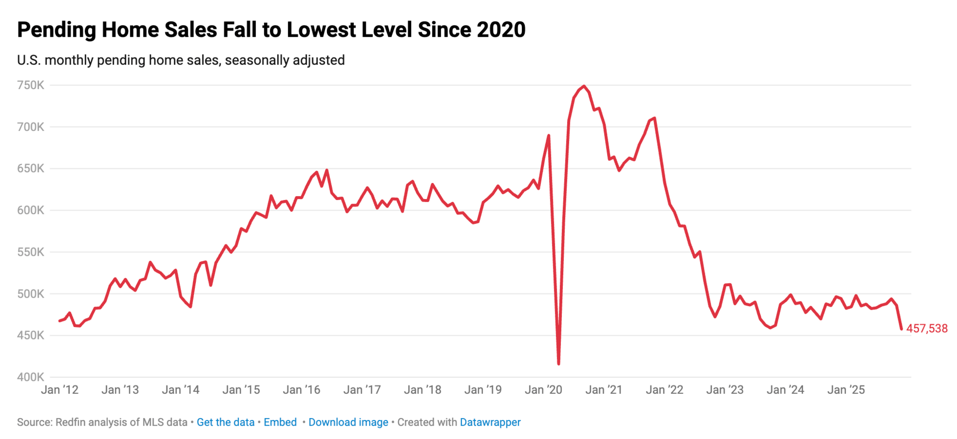 1. Pending home sales. "U.S. pending home sales declined 5.9% month over month in December to the lowest seasonally adjusted level on record except April 2020."