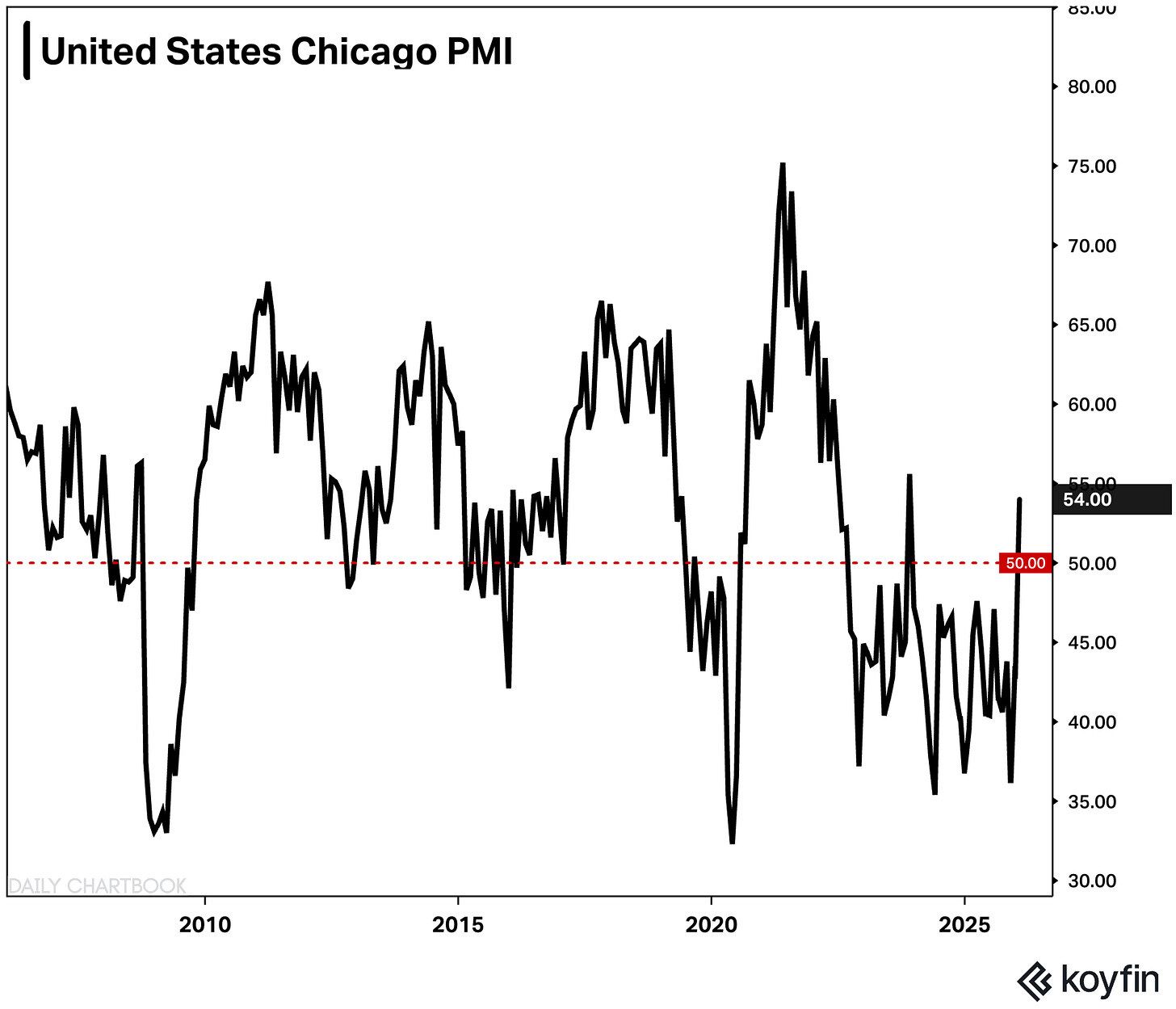 1. Chicago PMI. The Chicago Business Barometer jumped to 54 in January, breaking a streak of 25 consecutive months of contraction. It was the strongest reading since Nov’23.
