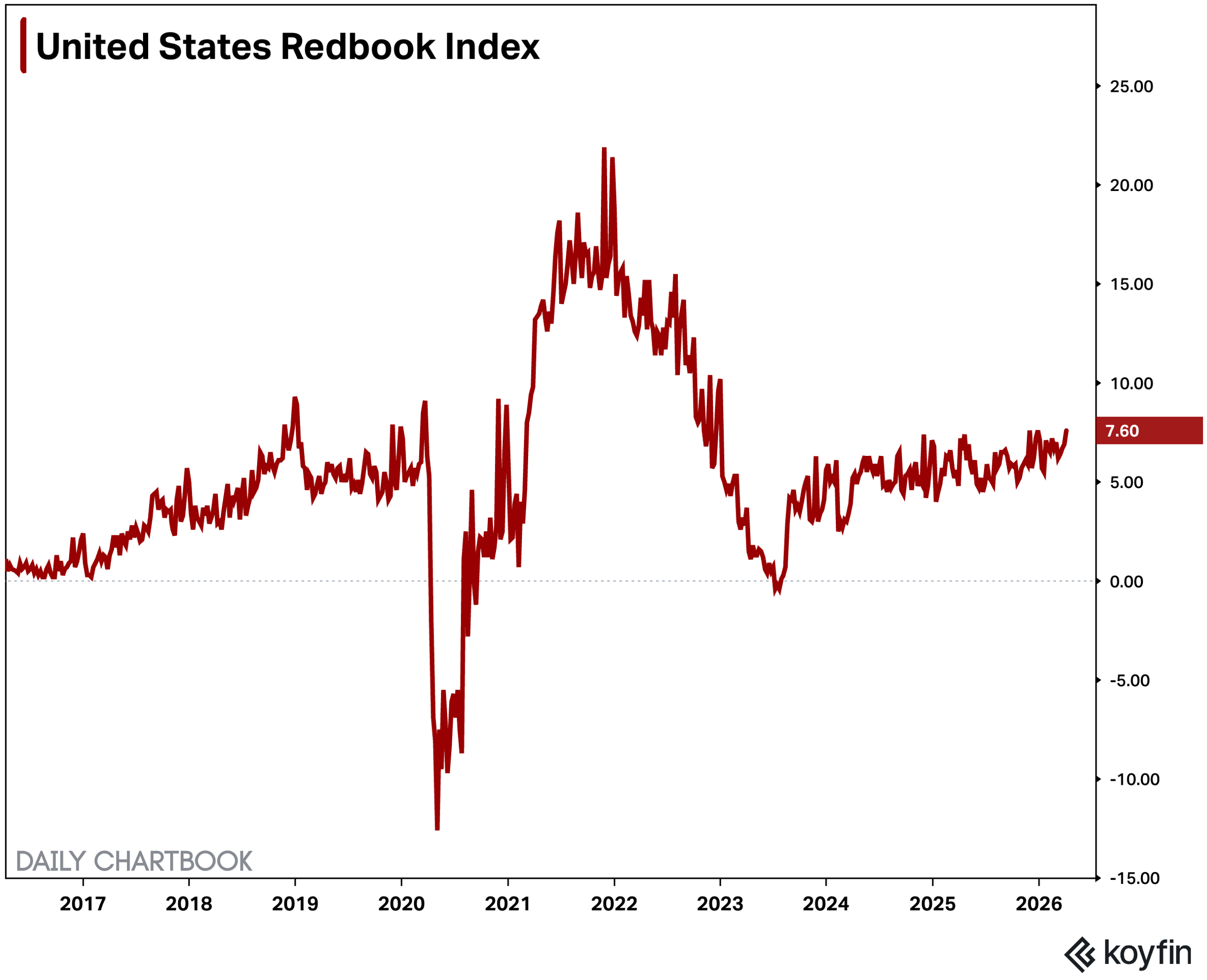 1. Redbook Index. Same-store retail sales rose by YTD high 7.6% YoY for the week ending Apr 4 (6.9% prev).