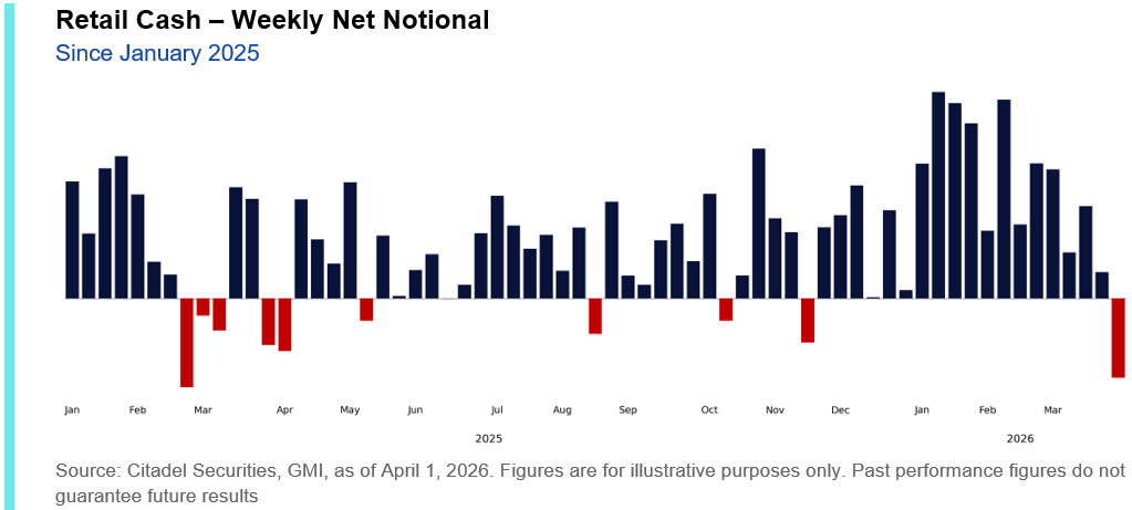3. Retail activity. "Our retail cash platform finished last week net selling, the first such week since November 2025 ... retail has moved away from one-way buying behavior."